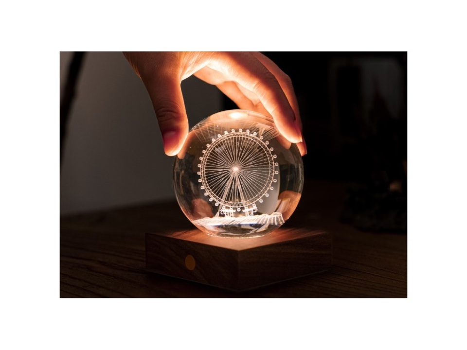 Materiale del prodotto: base in noce di alta qualità certificata FSC e cristallo infrangibile stampato al laser 3D.