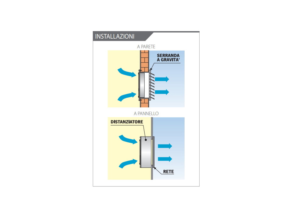 Girante elicoidale con pale a falce con sezione speciale stampate in tecnopolimero (200-400) o fusione di lega d'alluminio (450- 710) direttamente calettato al rotore del motore