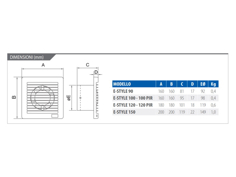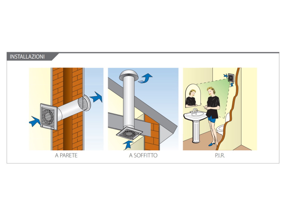 Chiusura a farfalla posteriore per evitare il rientro dell'aria ad apparecchio spento (Diam. 100 - 120 - 150 mm)