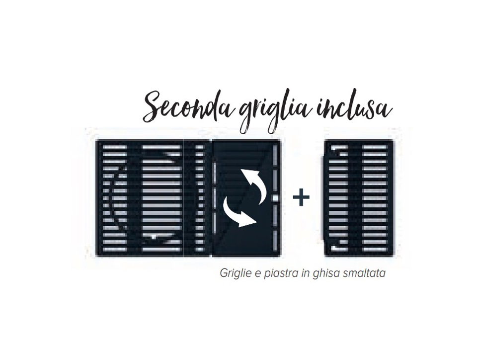 Ampia superficie di cottura da 62 x 40 cm in ghisa smaltata, composta da griglie intercambiabili, per una durata prolungata e risultati ottimali. Una piastra liscia è inclusa per sostituire una delle griglie.