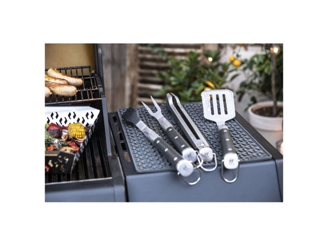 Eleva la tua esperienza alla griglia con il set di utensili per barbecue della serie BBQ+ di ZWILLING che comprende tutti i must di alta qualità che porteranno il tuo barbecue a un livello superiore. Il set comprende una paletta, una pinza, un forchettone e un pennello per condire. Tutti gli strumenti per il barbecue sono realizzati in acciaio inossidabile di alta qualità. , questo li rende robusti e durevoli, in modo da poterli utilizzare per anni. Questi utensili per barbecue sono dotati di manici extra-lunghi che consentono di cucinare alla griglia da una buona distanza, in tutta sicurezza. Per avere gli utensili sempre a portata di mano, puoi appendere alla griglia con il pratico occhiello in acciaio inox. E poiché a nessuno piace terminare una perfetta serata barbecue con le faccende domestiche, gli utensili per barbecue possono essere facilmente lavati in lavastoviglie. Il set comprende anche un pratico portautensili per riporre in modo sicuro questi utensili di alta qualità e mantenerli puliti fino alla prossima volta che ne hai bisogno.