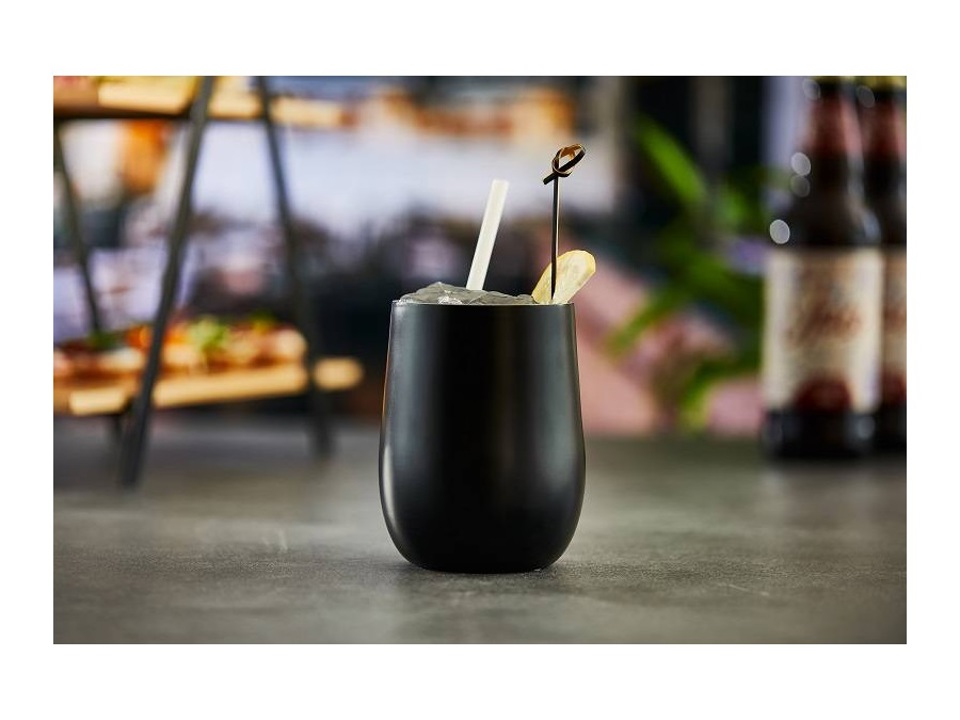 Bicchiere doppia parete in acciaio, con finitura esterna nero opaco - coperchio disponibile P1007. T