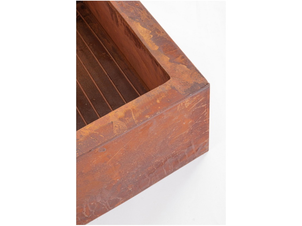 Acciaio (resistente alle alte temperature). L'acciaio non è verniciato ma naturalmente ossidato, il che vuol dire che il colore dell'articolo si modifica naturalmente a contatto con fuoco, acqua e altri agenti atmosferici creando un effetto ruggine autentico.