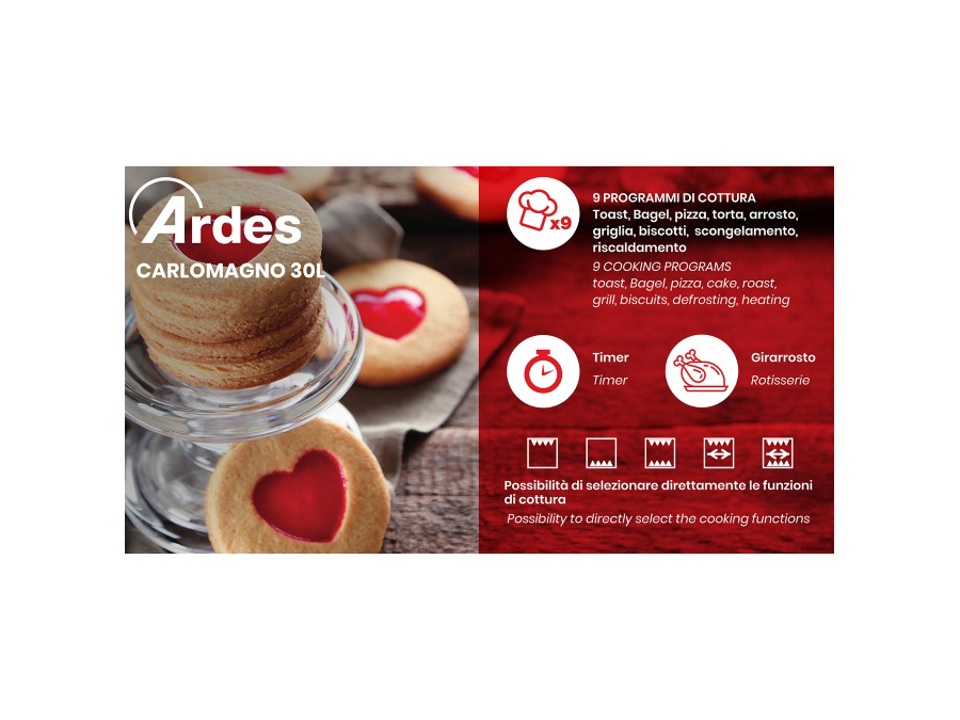 Forno 30L in acciaio inox 2 in 1: può essere utilizzato come forno statico o in modalità . .A pressione. .. . Forno a pressione altamente efficiente, riduce i tempi di cottura fino al 50% rispetto al forno tradizionale con un notevole risparmio energetico. La valvola di sfiato consente di mantenere la pressione corretta all'interno del forno garantendo massima sicurezza al prodotto. La cottura a pressione permette ai cibi di mantenere integre vitamine e altri nutrienti benefici per la salute, esaltando sapore e colore con l'utilizzo di meno sale e grassi. Display LED digitale con indicazione della temperatura/funzione/timer. 9 programmi di cottura (toast, bagel, pizza, torta, arrosto, griglia, biscotti, scongelamento, riscaldamento). Possibilità di selezionare direttamente le funzioni di cottura (solo sopra, solo sotto, sopra + sotto, sopra+girarrosto, sopra+sotto+girarrosto). Con girarrosto. Timer. Temperatura regolabile da 35 a 230°C. Piedini antiscivolo. Accessori: teglia, vassoio raccogli gocce/briciole, 2 griglie, girarrosto, pinze per teglia e girarrosto.