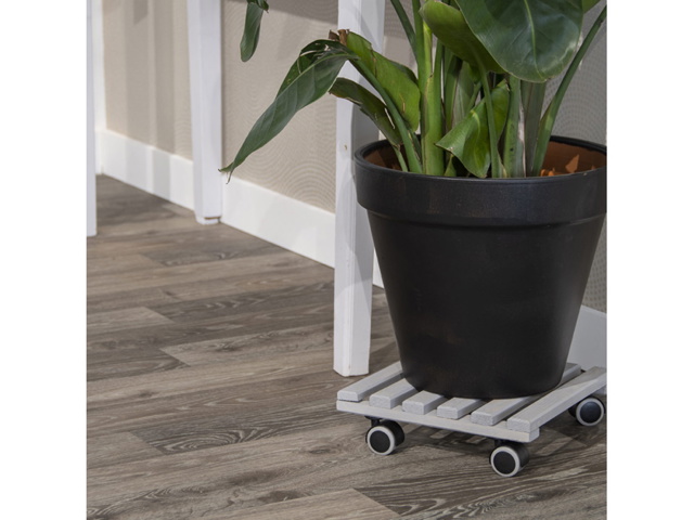 Questo carrello per piante è realizzato in legno certificato FSC® ed è adatto per uso interno.