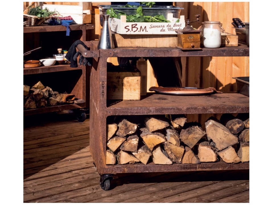 È dotato di una comoda area di stoccaggio della legna, che ti consente di tenere il combustibile ben organizzato e a portata di mano per alimentare facilmente il tuo braciere.