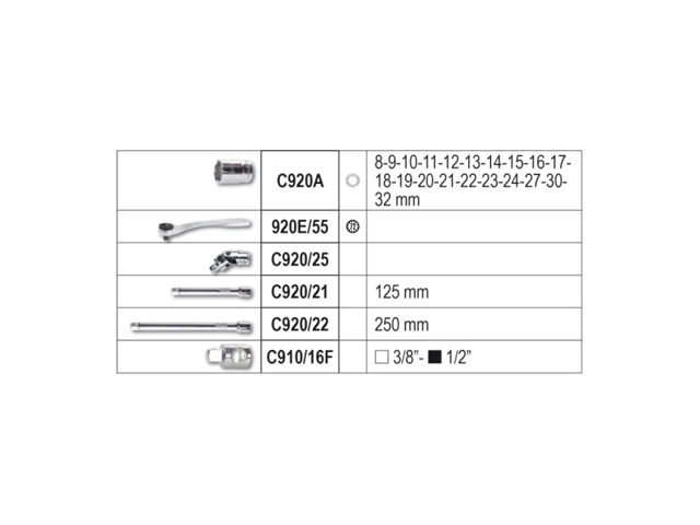 Assortimento da 25 elementi Beta Worker BW 928E/C25 composto da chiavi a bussola e relativi accessori, il tutto fornito in comoda valigetta di plastica per un facile trasporto. Dimensione cassetta 285 x 210 x 84 mm.