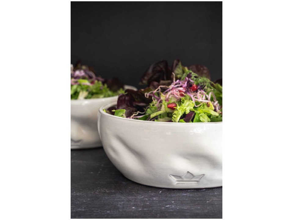L'aggiunta perfetta all'iconica serie Dented della nostra collezione da tavolo. Goditi la tua insalata, i tuoi cereali o la tua poke bowl con stile. La forma organica migliora la presa per i "mangiatori" di zuppe e noodles poiché la ciotola si adatta perfettamente alle tue mani.