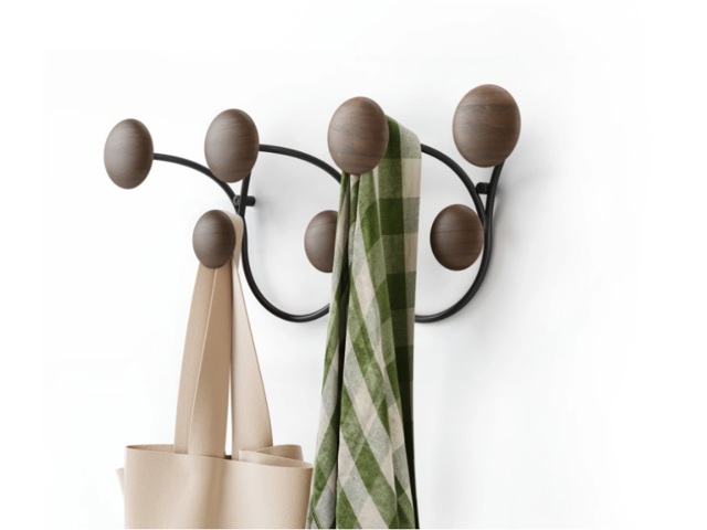 Materiali moderni e sofisticati: mescolando legno e metallo, Dotsy è sofisticato con un tocco giocoso grazie ai suoi ganci a forma circolare