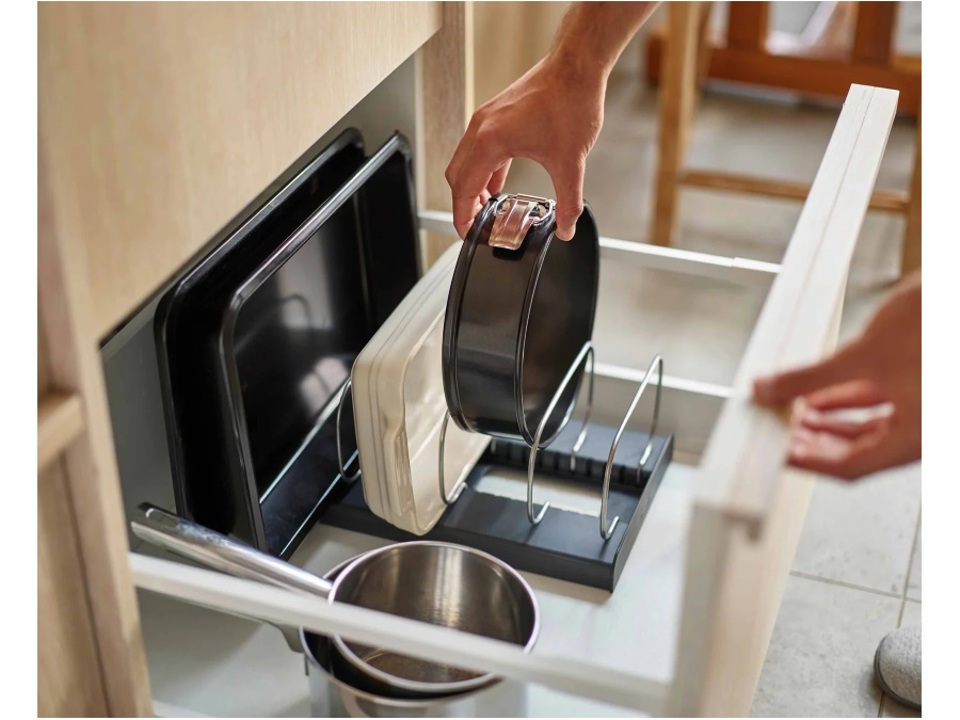 Un posto pulito e ordinato per teglie, pirofile e tortiere.