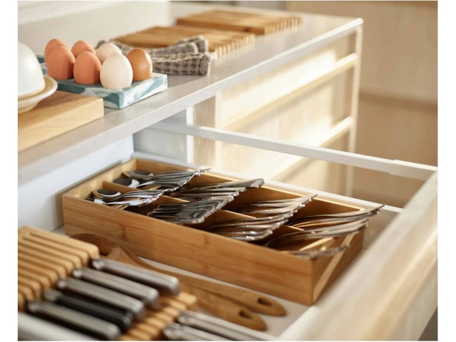 Dispone di scomparti individuali e impilati per diverse posate.