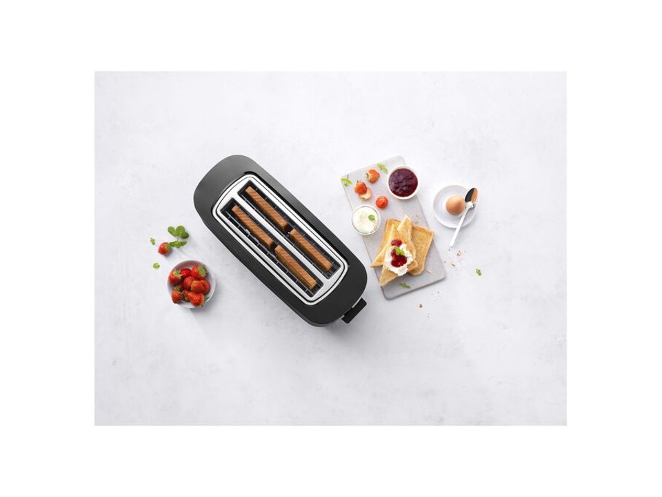 Il risultato è un tostapane a 2 o 4 fessure in argento o nero che donerà alla tua cucina un tocco di eleganza in più. Ti aspettano ben sette livelli di doratura per il tuo pane, che viene gentilmente spinto verso l'alto, grazie alla funzione soft-lift.
