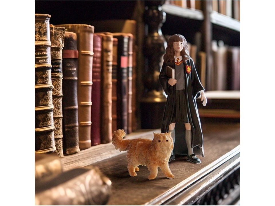 Hermione, una delle migliori amiche di Harry e compagna di classe di Grifondoro, è una studentessa intelligente e laboriosa. Il loro rapido intuito e le loro impressionanti abilità magiche spesso aiutano Harry e Ron nelle loro avventure. Qui potete vedere Crookshanks con il suo intelligente gatto domestico, che spesso accompagna il trio nelle sue avventure.