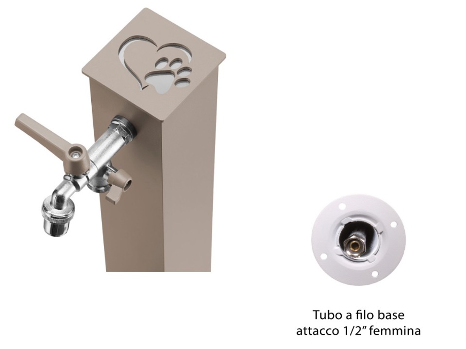 Ciotola inox asportabile e svuotabile con sistema antifurto legata alla base di cemento.