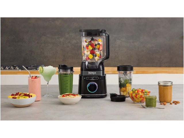 Il frullatore ad alta potenza Ninja Detect con bicchieri per smoothie rivoluziona la miscelazione tradizionale grazie alla tecnologia BlendSense che rileva gli ingredienti, il ghiaccio, le dimensioni delle porzioni e altro ancora e regola le impostazioni per ottenere risultati perfettamente omogenei. Basta inserire gli ingredienti, premere il quadrante e osservare come il frullatore li trasforma in bevande ghiacciate omogenee, smoothie e altro ancora.