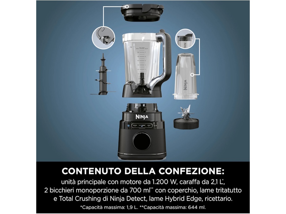 La tecnologia di miscelazione più avanzata di Ninja utilizza algoritmi intelligenti per rilevare gli ingredienti freschi o congelati, le dimensioni delle porzioni e altro ancora, e selezionare l'impostazione più efficiente utilizzando strumenti avanzati:
