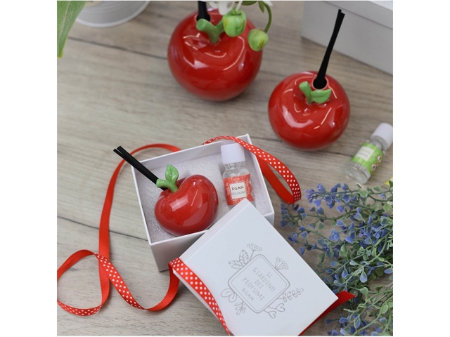 Porta calore e passione nei tuoi ambienti con il Profumatore Mela Rosso 6=C3=976 della collezione Giardino Dei Profumi di EGAN. Il rosso intenso e brillante si sposa perfettamente con l'eleganza della ceramica, diffondendo una fragranza avvolgente e rilassante. Dotato di essenza profumata da 10 ml e 3 bastoncini, è la soluzione ideale per profumare con stile la tua casa. Lasciati avvolgere dall'aroma unico di EGAN.