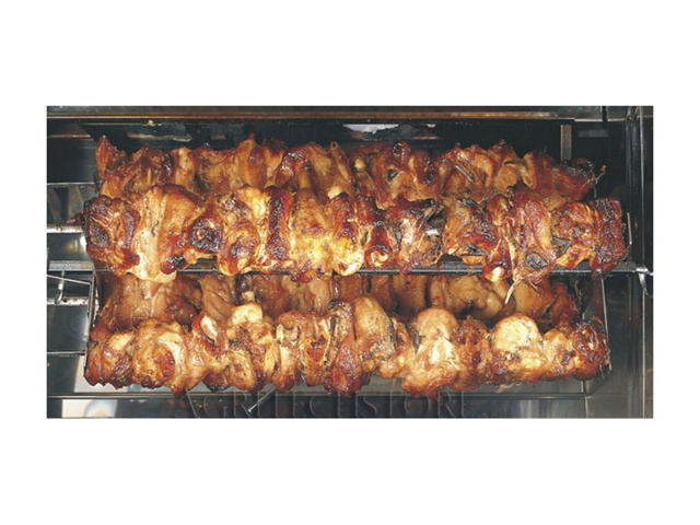 Il girarrosto è dotato di motore elettrico 220V. 12 W con 2 giri al minuto, omologato e certificato;