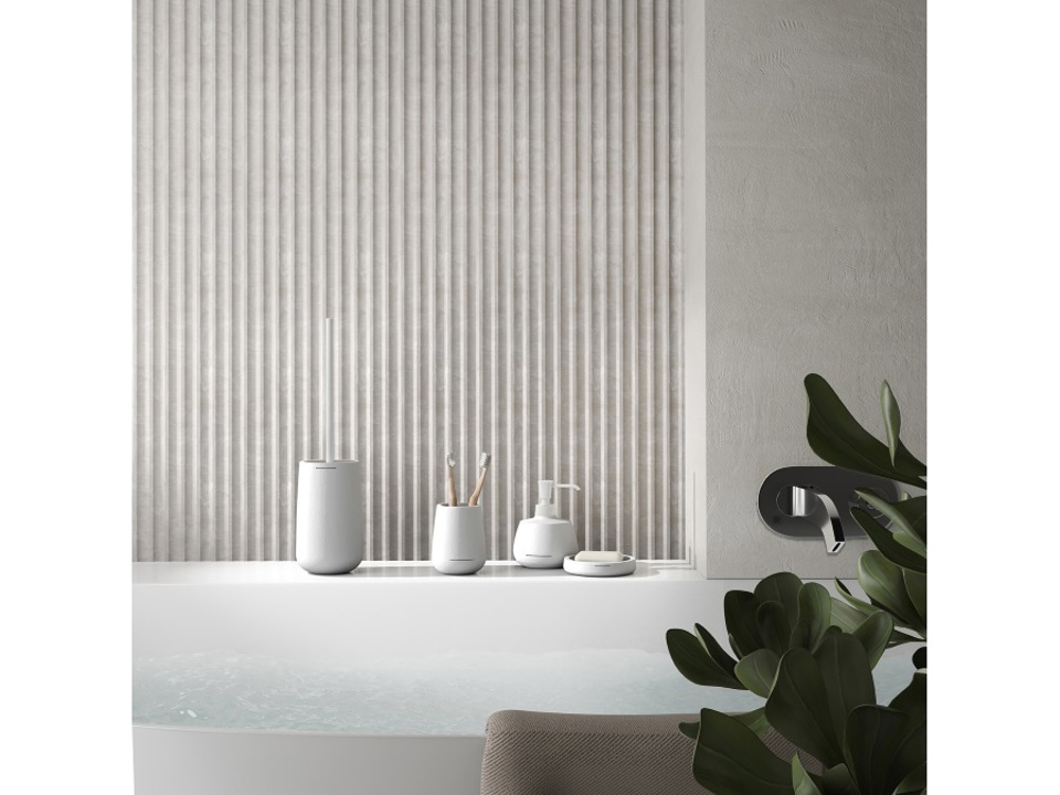 Lo scopino della serie Kira di Gedy è un'elegante aggiunta al tuo bagno. Realizzato in resina con una finitura bianco opaco, questo scopino combina stile e funzionalità.