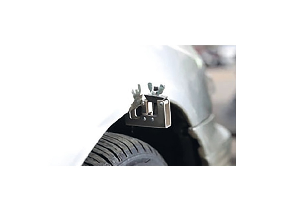 Grazie alla ganascia regolabile è possibile bloccare il passaruota in asse con la portiera per effettuare lavorazioni di saldatura.
