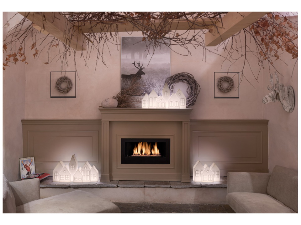 Kuusi è una decorazione luminosa contemporanea con richiami alle case tipicamente nordiche. La sorgente Led che illumina le cinque casette con campanile crea una calda atmosfera natalizia con spunti legati al mondo pop. Kuusi, combinabile con Kolme, è ideale per creare contesti invernali unici sia per vetrine di negozi, che per progetti contract o abitazioni private. Kuusi è un prodotto bifronte: entrambe le facce sono curate nei minimi dettagli e presentano disegni differenti, in questo modo il prodotto può essere posizionato su un mobile centro stanza o sul davanzale di una finestra ed essere visibile nel suo splendore da ambo i lati. Inoltre, affiancando due Kuusi con i fronti alternati, si ha la percezione di avere due prodotti diversi. In più, in una combinazione lineare con Kolme, i fronti diversi diventano quattro.