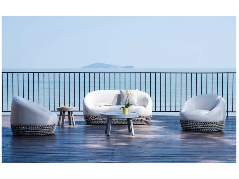 Corde marroni 8 mm, cuscini beige.