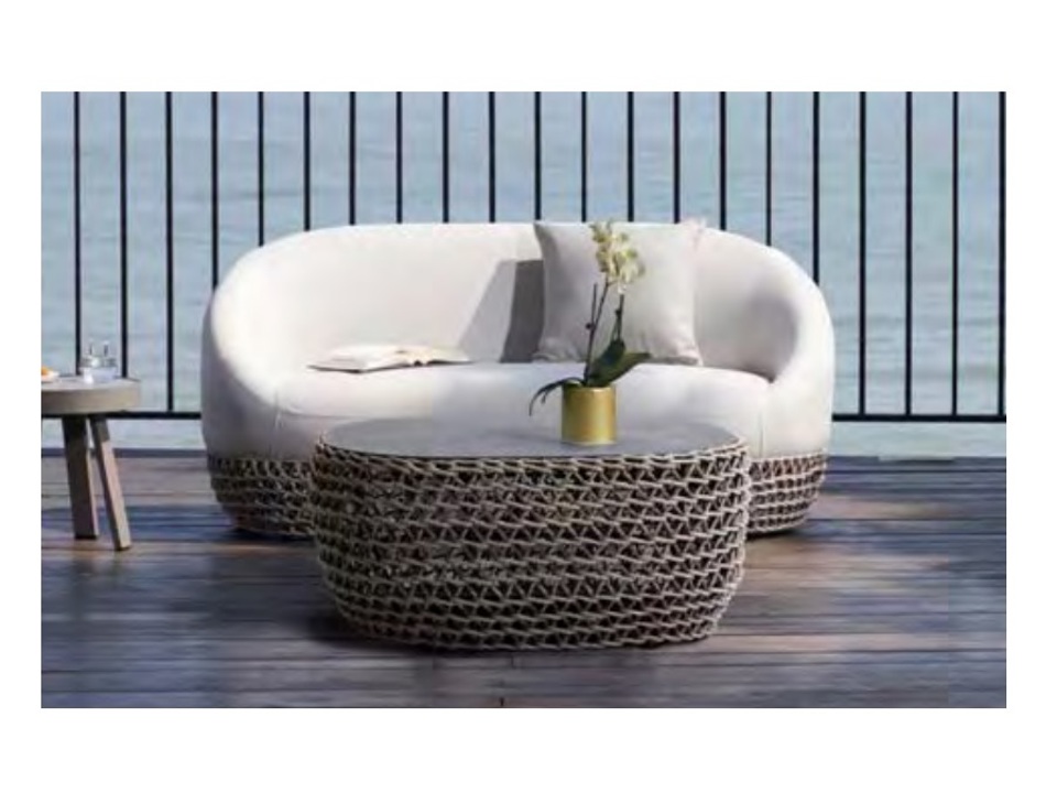 Corde marroni 8 mm, piano del tavolino in alluminio.