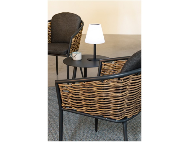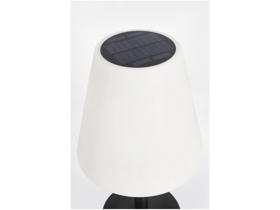 Pe, acciaio verniciato a polvere epossidica. Lampada led, 8 colori, batteria ricaricabile con cavo usb 1 mt incluso. Anche a ricarica solare. Telecomando a distanza per regolazione cambio colore incluso. Per uso interno ed esterno, ip44. La lampada si accende in assenza di luce. In presenza di luce, coprire il pannello solare per accenderla. Da assemblare.