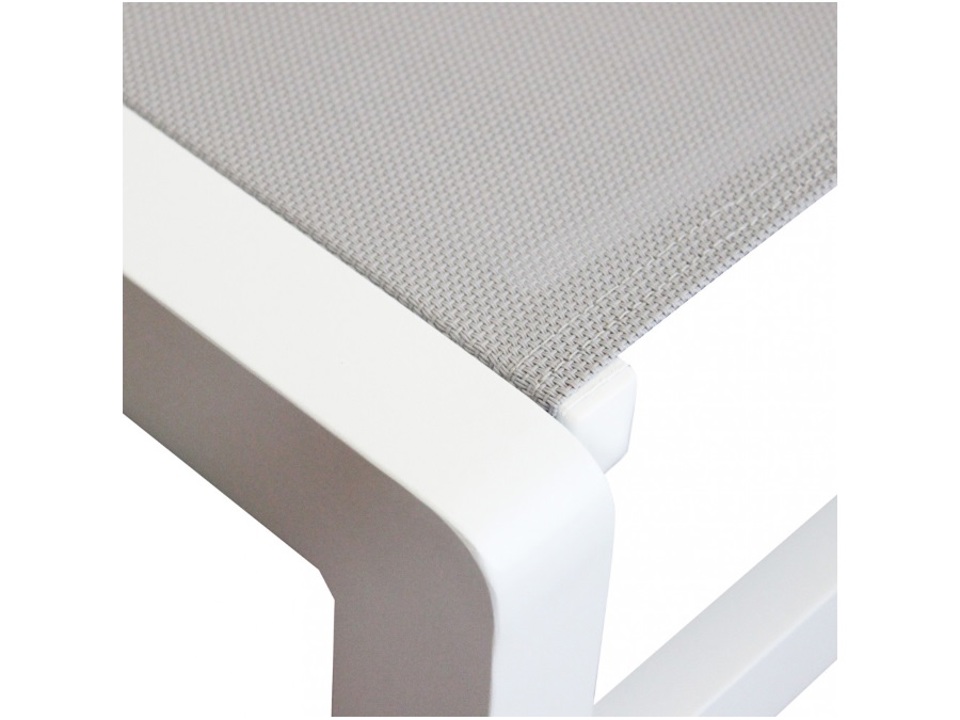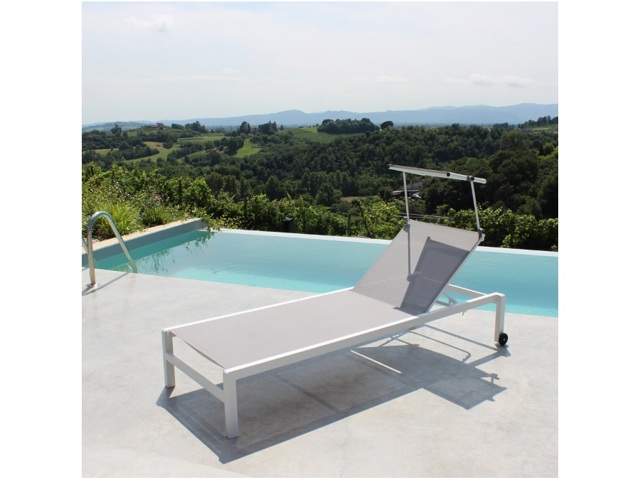 Struttura in alluminio verniciato bianco in textilene con tettuccio.