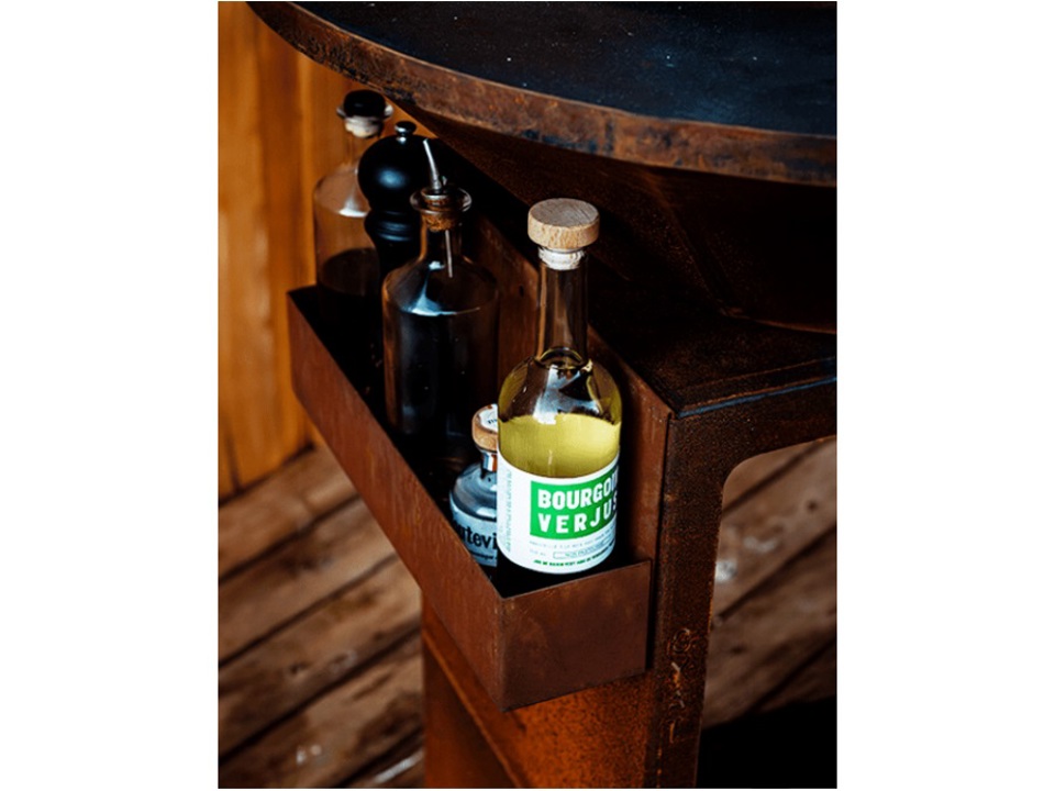 Aggiungi ordine e praticità al tuo braciere con questa funzionale oliera, perfetta per conservare le tue bottiglie di olio, aceto o spezie. Progettato appositamente per essere fissato su entrambi i lati del braciere, ottimizza lo spazio di lavoro mantenendo gli utensili essenziali per cucinare a portata di mano.