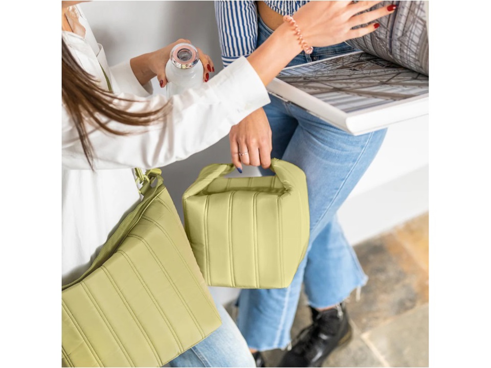 Sostenibile: Borsa realizzata in plastica riciclata 100% post-consumo; Contenitore senza coperchio realizzato in plastica a base biologica e 100% riciclabile