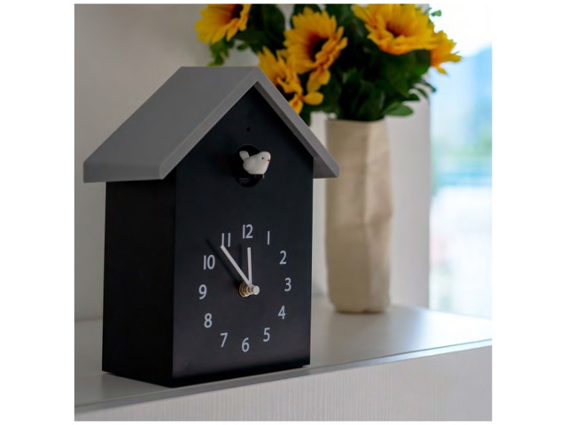Orologio a cucù da appendere al muro oppure da collocare sulle tue scaffalature per rendere ogni ambiente più allegro ed originale. Lasciati accompagnare dal dolce cinguettio dell'uccellino allo scoccare di ogni ora. Orario del cinguettio e volume regolabili. 3 batterie AA incluse. Pendolo removibile.