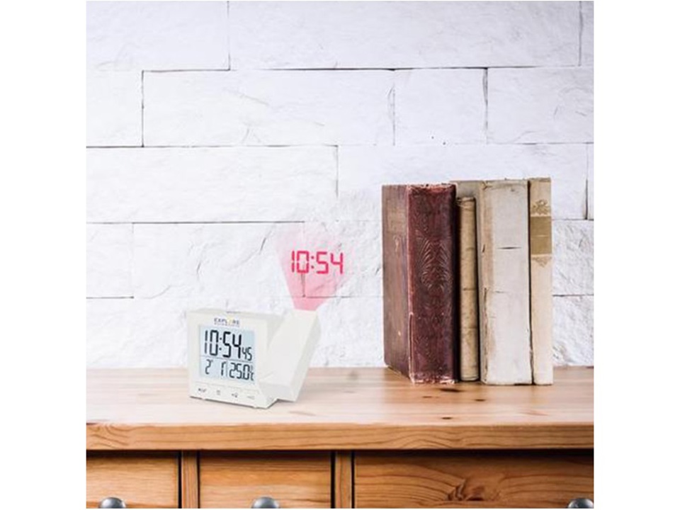 L'orologio radiocontrollato RDP1001, con doppia sveglia e misurazione della temperatura interna, proietta l'ora su una parete o sul soffitto, anche in modo permanente, grazie all'alimentazione fornita dall'adattatore di corrente in dotazione. Il design sobrio e discreto consente di collocarlo in qualsiasi ambiente della casa, dal salotto alla camera da letto.
