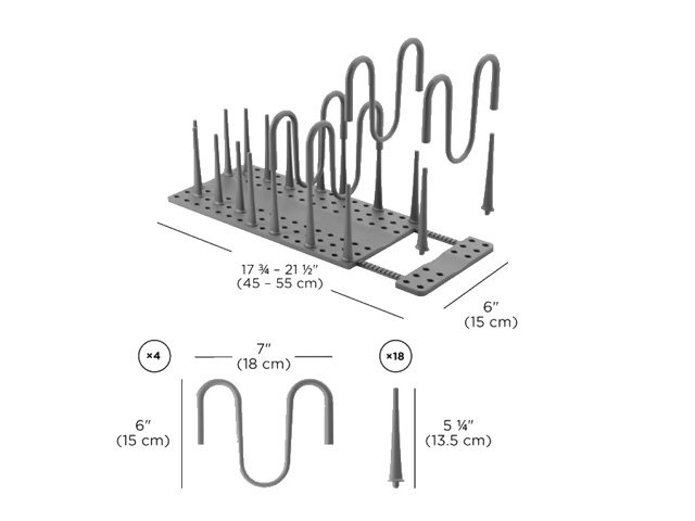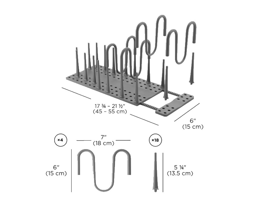 Organizzazione Degli Spazi Configurabile E Regolabile: l'organizer per pentole Peggy si estende per adattarsi a qualsiasi mobile da cucina o cassetto, grazie alla base regolabile e ai pioli configurabili. Con 18 pioli e 4 prolunghe, puoi personalizzare il tuo organizer per sistemare le pentole di tutte le dimensioni.