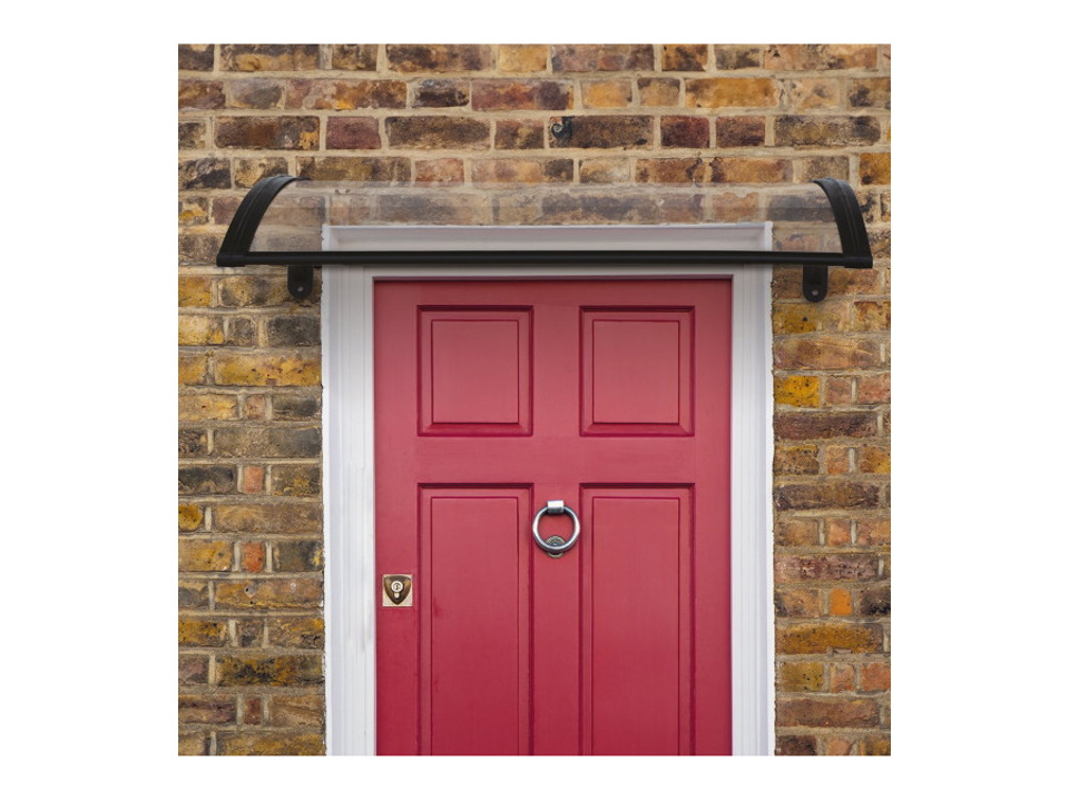 Pensilina con braccetti in polipropilene rinforzato, profili in alluminio sia sulla parte frontale che sul retro.