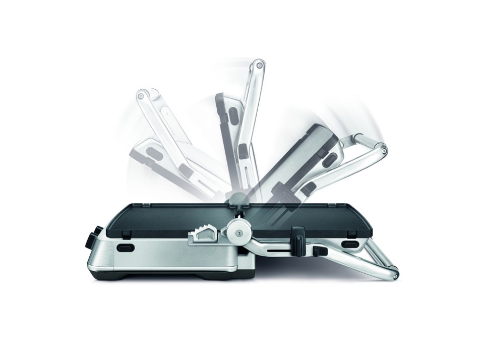 Permette di regolare l'angolazione della base in modo da far scolare il grasso o può essere utilizzata per preparare uova, pancake e panini tostati alla perfezione