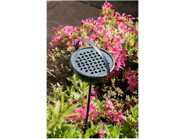 Porta zampironi in metallo. Dotato di griglia con pattern decorativo, utilizzabile da tavolo con manico pieghevole oppure con stelo (modulabile in altezza) da inserire nel terreno per posizionarlo ovunque tu voglia. Il magnete ti permette il suo miglior utilizzo con o senza stelo. Rendi ogni ambiente originale, colorato ma soprattutto al sicuro da tutti gli insetti. Zampirone escluso.