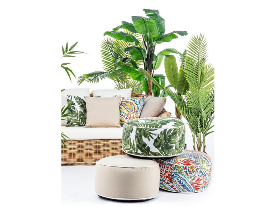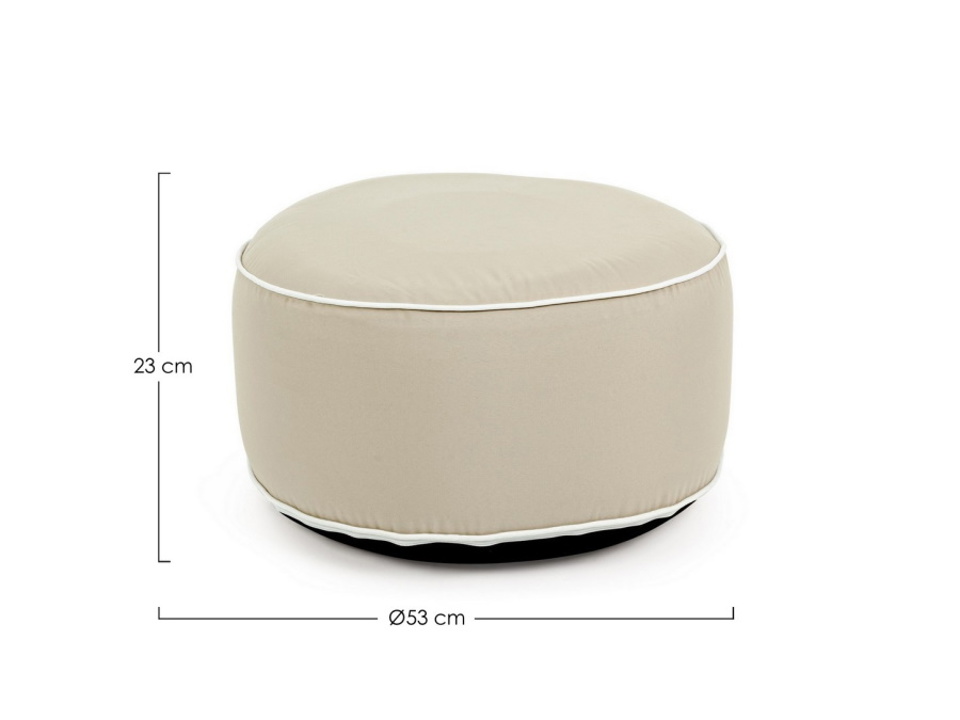 Tessuto in spun poliestere 200 gr/m2, sfoderabile con cerniera a scomparsa. Con doppio bordo e maniglia. Idrorepellente. Resistente ai raggi uv iso 7. 0. Tessuto sul fondo in poliestere oxford 250gr/m2. Rivestimento interno in pvc. Gonfiabile