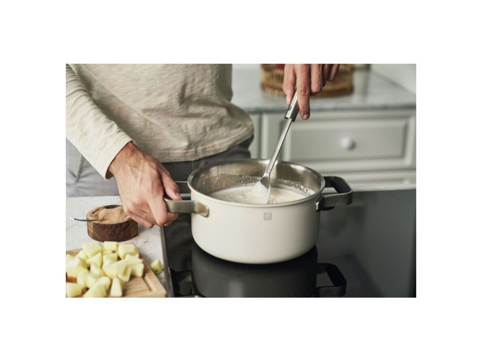 In un'atmosfera di serenità e tranquillità, il colore bianco avorio evoca la sensazione di una mattina accogliente. La stessa sensazione che donano le pentole ZWILLING Pure, elegantemente realizzate in bianco avorio. Queste pentole, innovative per il loro design a tre strati in acciaio inox con rivestimento esterno in ceramica, uniscono perfettamente estetica e prestazioni di alta qualità. Grazie al fondo a tre strati, il calore viene distribuito in modo uniforme e rapido, mentre l'acciaio inossidabile di alta qualità assicura una ritenzione ottimale del calore. Il bordo ripiegato delle pentole consente un versamento preciso senza gocciolamenti indesiderati, permettendoti di creare piatti deliziosi ogni volta che lo desideri.