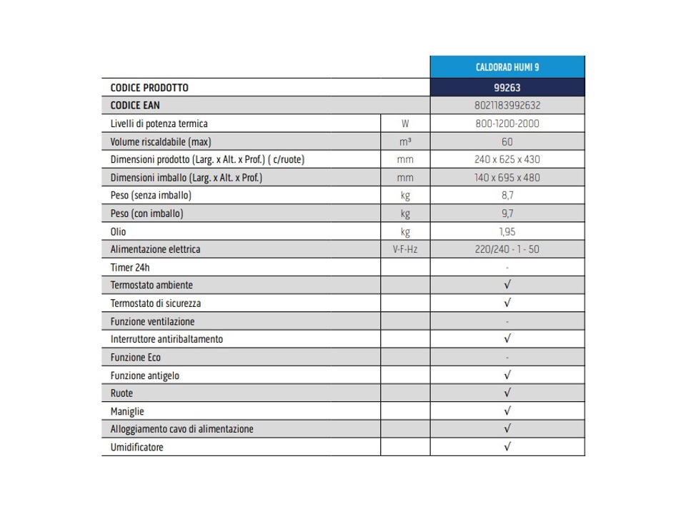 Calore duraturo e aria confortevole. Caldorad Humi è il radiatore elettrico ad olio con ben 9 o 13 elementi riscaldanti che amplificano la diffusione e la durata del calore all'interno dell'ambiente. Grazie all'umidificatore integrato, inoltre, aiuta a mantenere il giusto livello di umidità nell'aria, per il massimo comfort. ..
