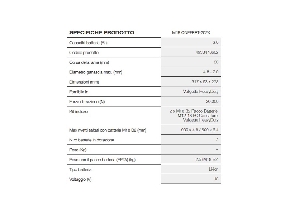 Consente fino a 900 rivetti (4,8 mm in alluminio) o 500 rivetti (6,4 mm in alluminio) con una singola carica di batteria (2. 0 Ah)