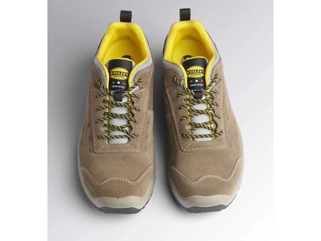 Calzatura di sicurezza bassa S1P in crosta scamosciata italiana forata.