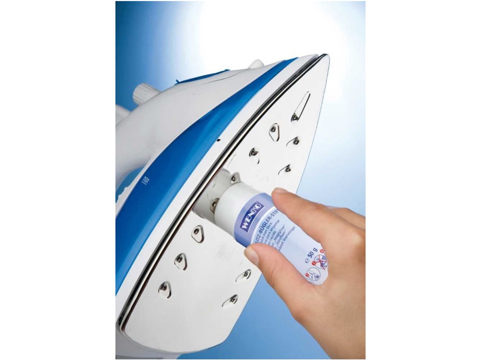Il pratico set per la pulizia aiuta a rendere la stiratura più semplice e veloce. Il bastoncino per la cura rende il ferro velocissimo e scorrevole. I residui di sporco bruciato si cancellano facilmente con l'apposita gomma. La gomma può essere utilizzata asciutta o inumidita. L'umidificazione crea una sottile schiuma detergente. La spazzola è ideale per la pulizia degli ugelli vapore. Acidi grassi, cera d'api, senza solventi.