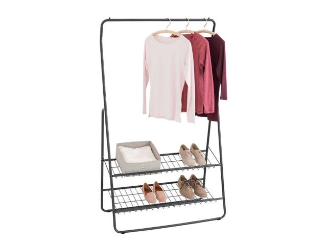 Appendiabiti moderno da terra con 2 ripiani, nero