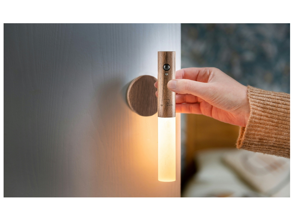 Può essere posizionato assolutamente ovunque desideri. La base adesiva in vero legno naturale e sostenibile può essere fissata alla maggior parte delle superfici e, con un magnete abilmente nascosto all'interno, il bastone luminoso può essere facilmente posizionato, smontato e persino utilizzato come una pratica torcia portatile. Puoi ricaricarlo secondo necessità e riposizionarlo semplicemente sulla sua base magnetizzata. Illumina un corridoio sporco, su una tromba delle scale, un armadio o anche come luci da comodino, senza la necessità di cablaggi complicati.
