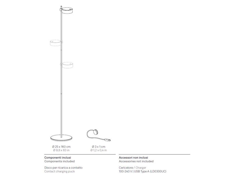 Super O è una collezione di lampade a batteria, portatili e ricaricabili che comprende le tipologie da tavolo, terra (in tre modelli), terra sospesa (in tre modelli), parete (in due modelli) e a sospensione. Il modulo luminoso si fissa alla montatura di ciascun modello tramite un magnete, e - ruotando a 360° - permette di orientare la luce. Un controllo "touch" presente nella parte superiore del modulo permette l'accensione, la regolazione dell'intensità luminosa (dimmerazione a 4 step) e la selezione della temperatura di colore della luce tra 2700 K, 3150 K e 4000 K. Grazie a un alto indice di protezione, le lampade della collezione sono utilizzabili anche all'esterno. Possiedono un sistema di controllo elettronico che monitora l'autonomia residua e garantisce un flusso luminoso costante fino all'esaurimento della batteria, permettendo di ottimizzare le ricariche ed effettuarle sempre in maniera corretta. Il modulo si rimuove in modo pratico e si ricarica comodamente connettendolo all'apposito disco di ricarica a contatto.