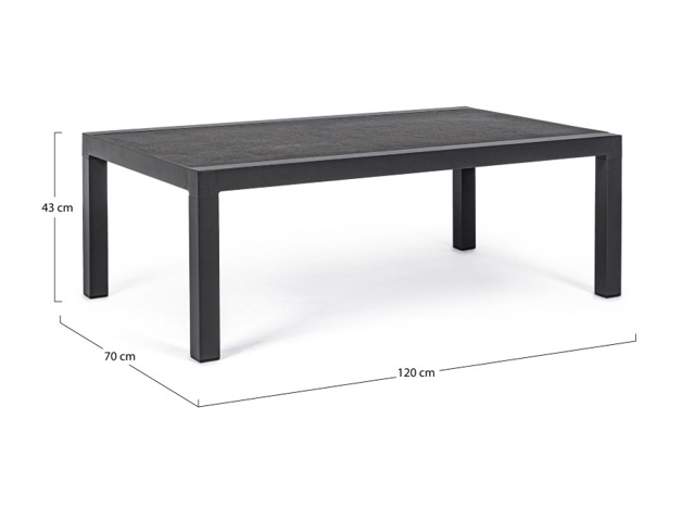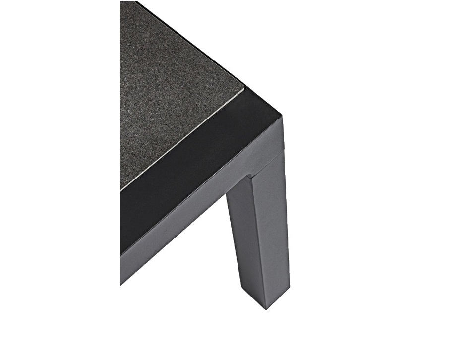 Struttura in alluminio verniciata a polvere (poliestere). Piano in ceramica (spessore 10mm). Gambe da assemblare.