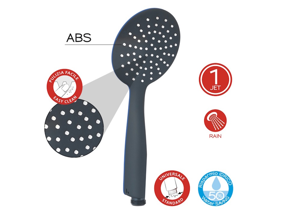 Doccetta a 1 getto, effetto rain. Attacco misura universale standard. Plus prodotto: dotato di filtro antisabbia, tettarelle che permettono una facile rimozione del calcare accumulatosi e di un filtro che permette la riduzione fino al 50% del consumo d acqua. Ugelli con sistema di pulizia facile.