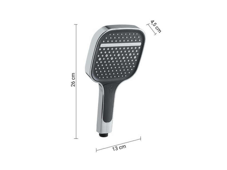 Doccetta a 3 getti, effetto cascade. Attacco misura universale standard. Plus prodotto: cambio getti a pulsante, dotato di filtro antisabbia, tettarelle che permettono una facile rimozione del calcare accumulatosi e di un filtro che permette la riduzione fino al 50% del consumo d acqua. Ugelli con sistema di pulizia facile.