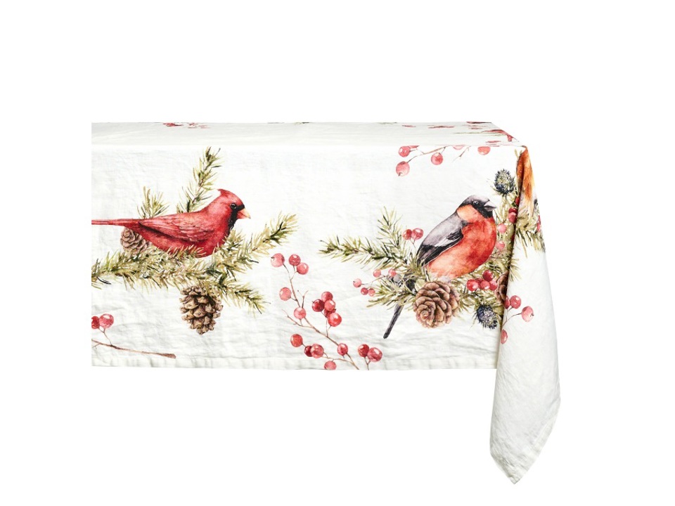 Tovaglia in lino bianco stampa Winter Birds
